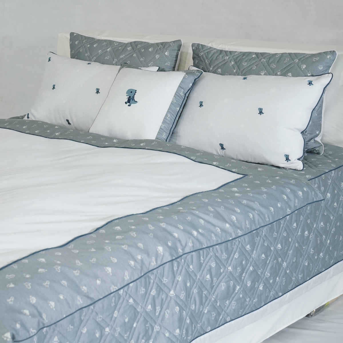 EPC22041 là bộ chăn ga đặc biệt thiết kế riêng cho những “khách hàng nhí” của Everon. Nổi bật với hình ảnh chú khủng long Dino dễ thương, EPC22041 sử dụng cách may đáp vải tinh tế, tạo sự hài hòa trong màu sắc và nổi bật hình ảnh hơn. Trên nền vải Cotton Satin còn xuất hiện thêm nhiều chú khủng long nhỏ xinh được in nổi bật, vô cùng đáng yêu. Nền vải xanh kết hợp cùng vải ghi rất sạch sẽ, dễ sử dụng.