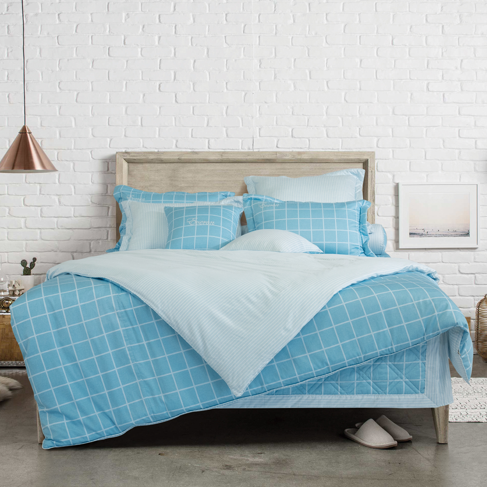 Nếu bạn yêu thích màu xanh lam và họa tiết kẻ caro đơn giản thì đừng bỏ qua EPC22045 nhé! Bộ chăn ga chắc chắn sẽ là điểm nhấn tuyệt vời cho căn phòng ngủ của bạn và là người bạn đồng hành giúp bạn luôn có giấc ngủ tươi xanh mỗi ngày.