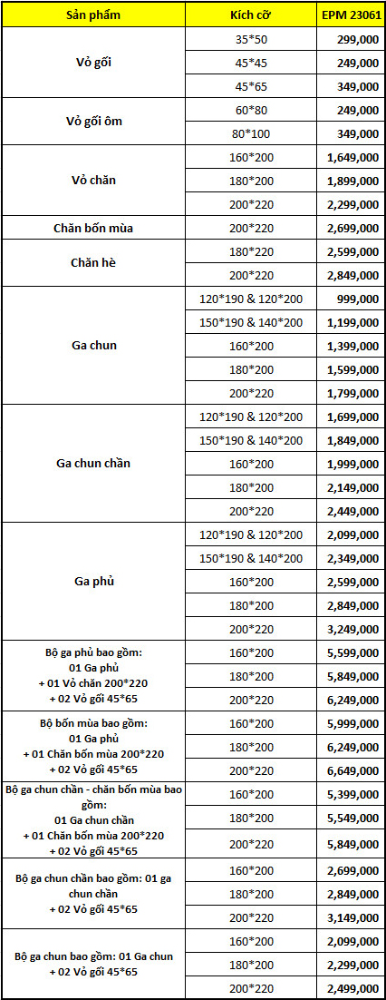 Thông tin chi tiết bộ sản phẩm chăn ga gối Everon EPM 23061