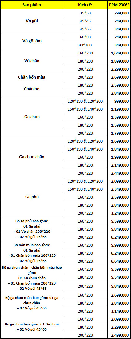 Thông tin chi tiết bộ sản phẩm chăn ga gối Everon EPM 23063