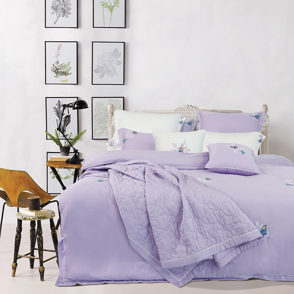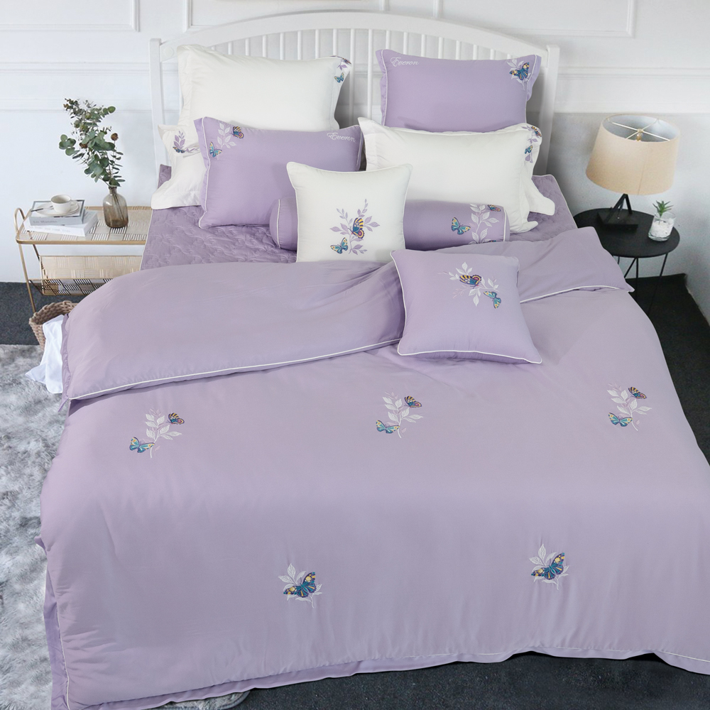 ESB22052 mang đến một không gian mới mẻ, đầy cảm hứng với gam màu tím nhạt trẻ trung, hiện đại. Màu tím tượng trưng cho sự thủy chung, tình cảm gắn bó giống như con bướm và nhành hoa – họa tiết chủ đạo của bộ chăn ga. Họa tiết sinh động được thêu tỉ mỉ, điểm xuyết thêm những đường thêu ren điệu đà càng khiến bộ chăn ga trở nên tinh tế hơn bao giờ hết. Chất liệu vải Bamboo mềm mượt tôn thêm vẻ đẹp của những chú bướm màu sắc và cành hoa mỏng manh bay bay trong gió. Tất cả sự kết nối tạo nên một tổng thể hài hòa vô cùng.