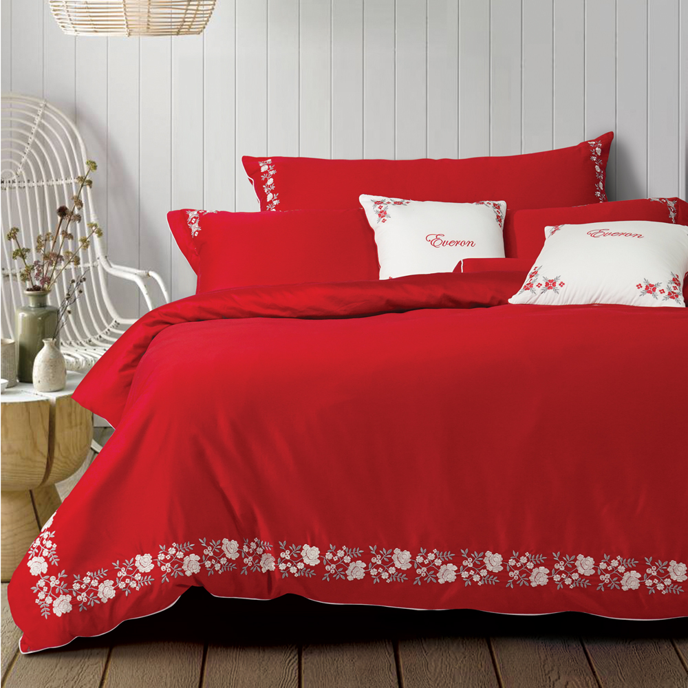Màu đỏ tượng trưng cho sự may mắn, niềm vui và sự hạnh phúc, chính vì thế, chăn ga màu đỏ luôn được lựa chọn hàng đầu cho ngày cưới – ngày trọng đại cả đời. Hiểu được nỗi lòng đó, Everon mang đến bộ chăn ga ESM22019 với tone màu đỏ chủ đạo, thiết kế hiện đại, trang nhã, không quá cầu kỳ nhưng vẫn hấp dẫn, phù hợp với xu hướng của các bạn trẻ hiện nay. Những chùm hoa được thêu liên tiếp tạo thành một đường hoa tạo nên điểm nhấn đặc sắc cho bộ chăn ga. ESM22019 là biểu tượng cho cuộc sống hôn nhân viên mãn, một khởi đầu tốt đẹp cho các cặp đôi.