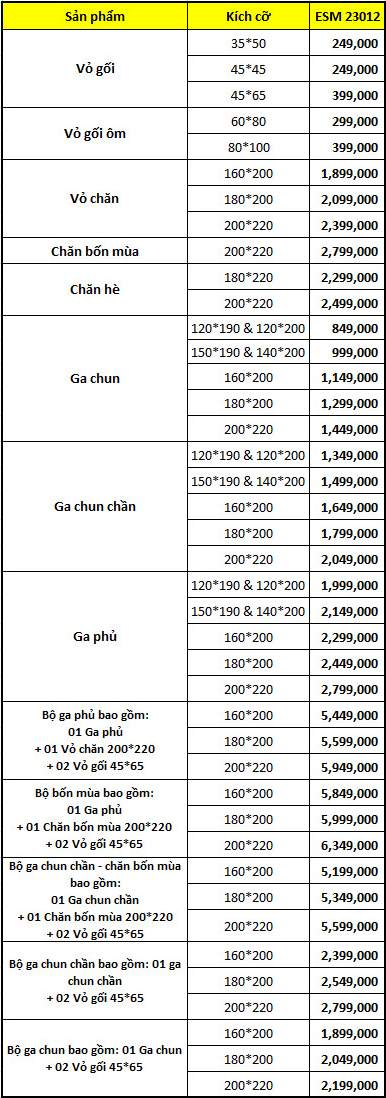 Thông số chi tiết bộ sản phẩm chăn ga gối Everon ESM 23012